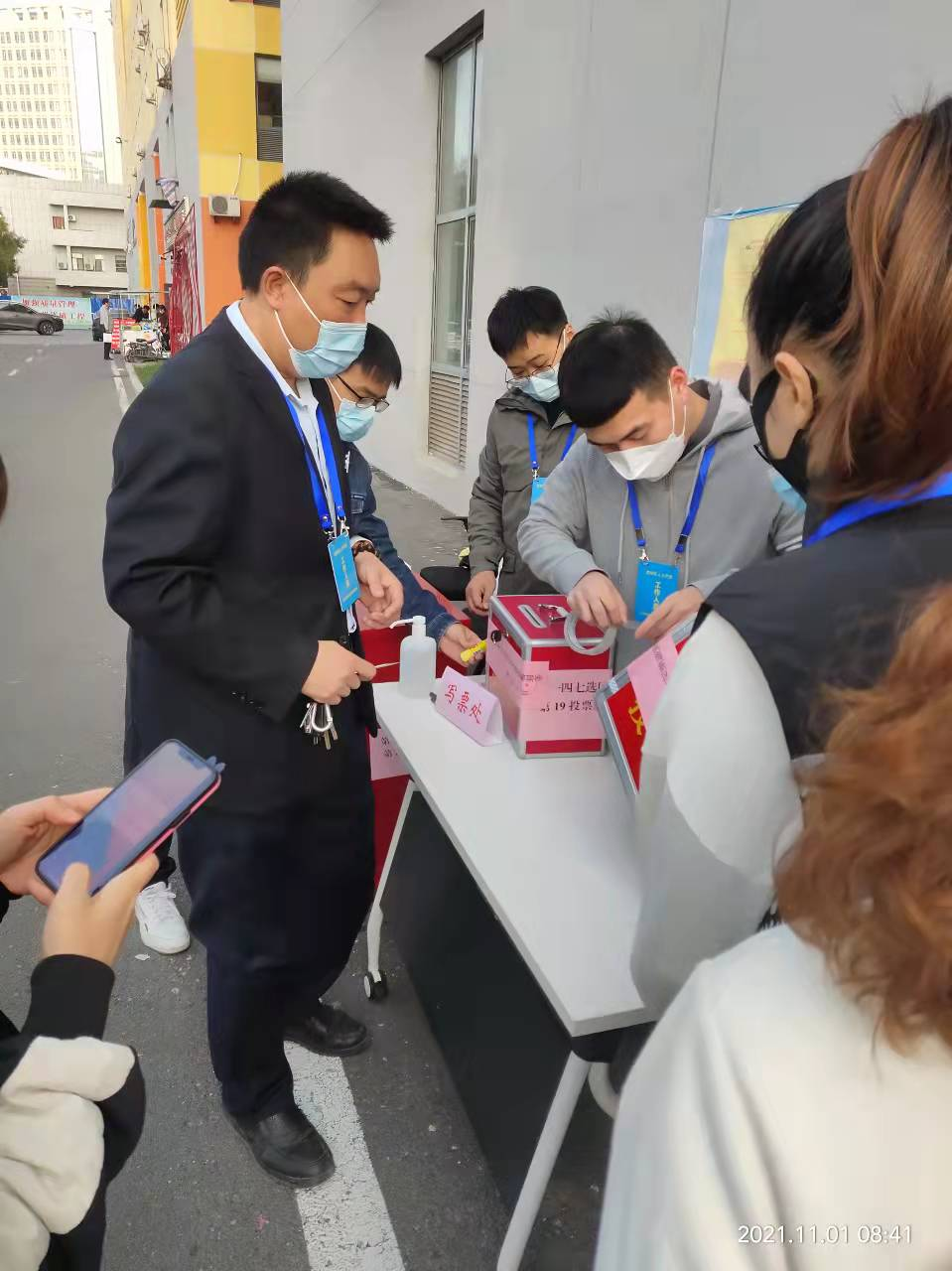2021年11月1日选举当日,公司组织全体人员参加选举工作的同时,各项目积极联系业主企业工作人员到各选举投票点投上自己庄严神圣的一票。在疫情防控常态化的情况下,各点位投票选举过程坚持贯彻执行疫情防控措施,间隔一米距离有序投票,查验业主企业人员提前准备健康码和行程码,并设置临时隔离点。