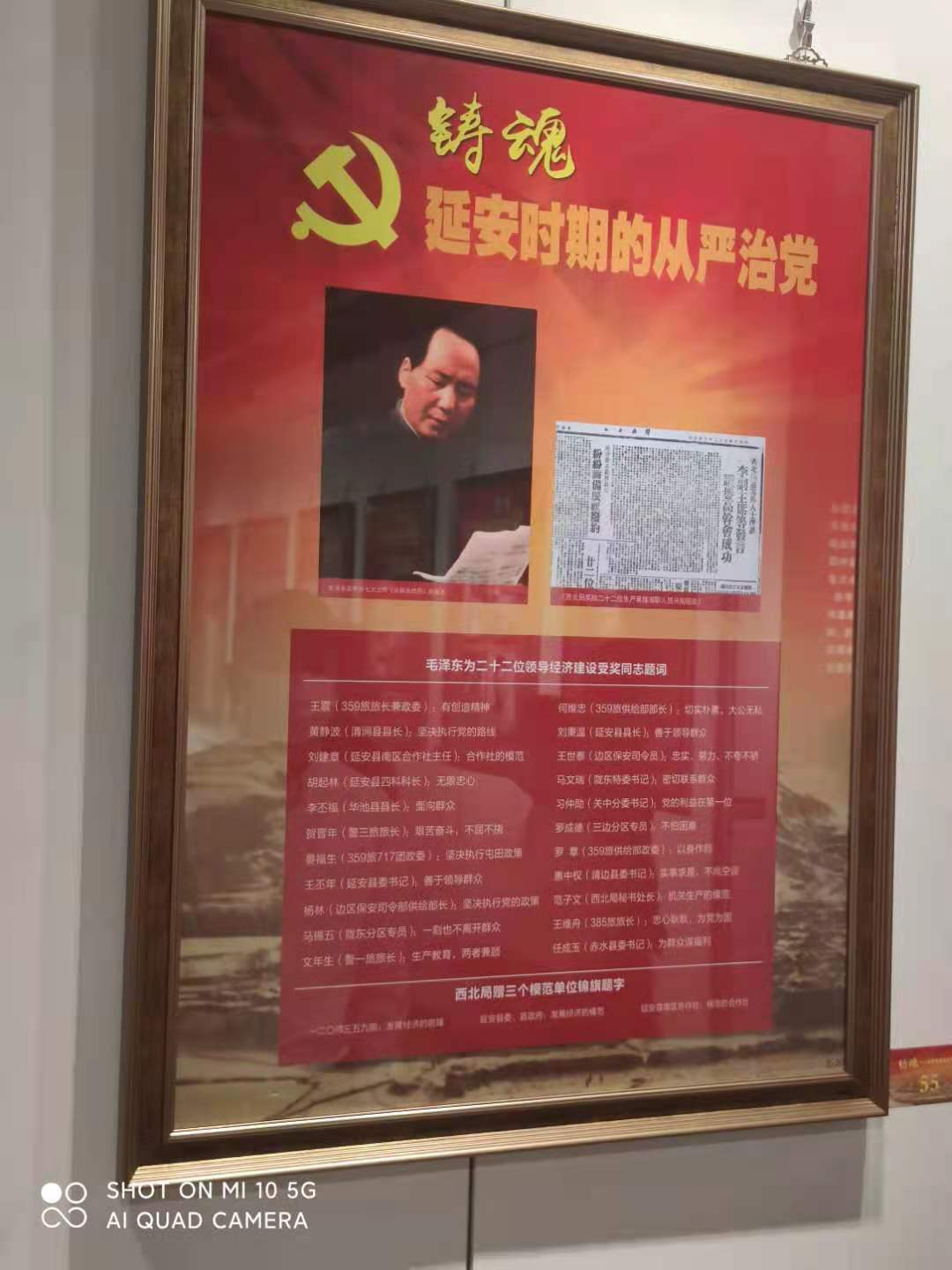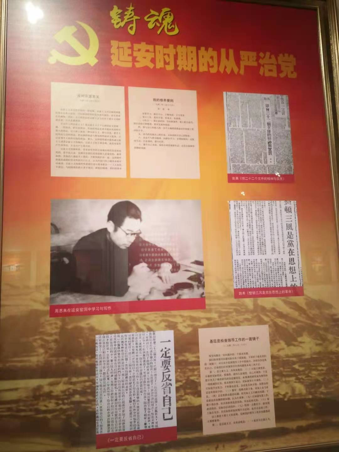专题展览真实反映了延安时期中国共产党从严治党的决心和成效,再现了延安时期中国共产党从组织建设、思想建设、制度建设、作风建设等方面大胆探索、励精图治,成功探索出从严治党之路,彰显中国共产党人不忘初心,牢记使命,为中华民族的解放事业不懈奋斗的延安精神。大家驻足在一幅幅生动的图片前,认真阅读一件件典型的事例,读到细微处触动处拍照谨记,大家心灵受到了触动。